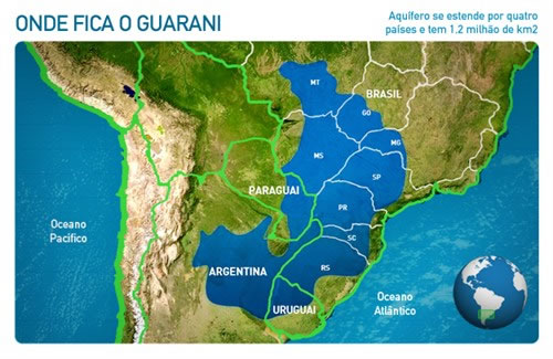 O Aquífero Guarani, localizado principalmente no Brasil, mas também presente em partes da Argentina, Paraguai e Uruguai, é um dos maiores sistemas de água subterrânea transfronteiriça do mundo. Estima-se que ele contenha cerca de 37 mil km³ de água doce, volume suficiente para abastecer toda a população mundial por várias décadas. Sua importância vai além do consumo humano: ele é essencial para o abastecimento urbano, irrigação agrícola e também para manter o equilíbrio de ecossistemas naturais.